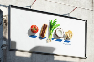 Negli annunci ideati da BBH London vediamo infatti le lettere del nome T, E, S, C, O rappresentate con dei prodotti freschi i cui nomi iniziano per ciascuna lettera. Da nessuna parte viene menzionato il nome di Tesco, che ha voluto così sfidare la sacra regola della presenza del logo negli annunci pubblicitari. Unico tratto inconfondibile, i cinque chevron blu che confermano senza alcun dubbio l’identità del retailer britannico.